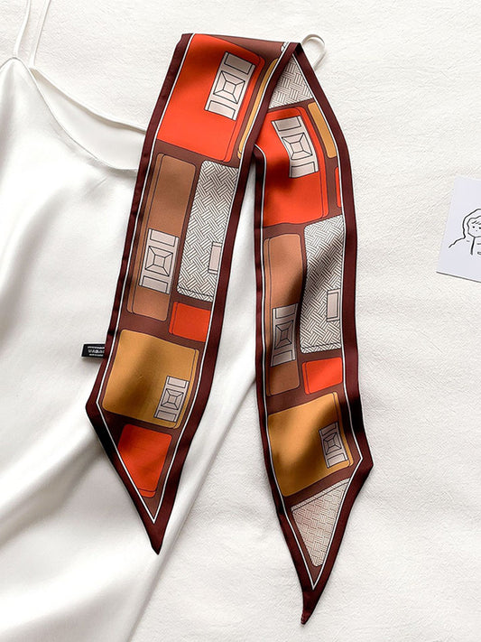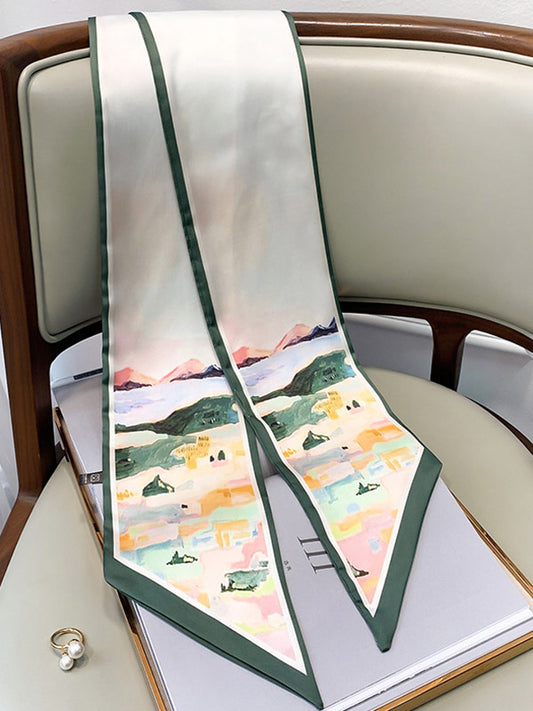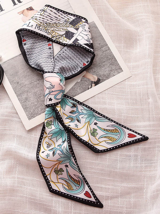 Original Flower&Letter Print Hair Band&Silk Scarf