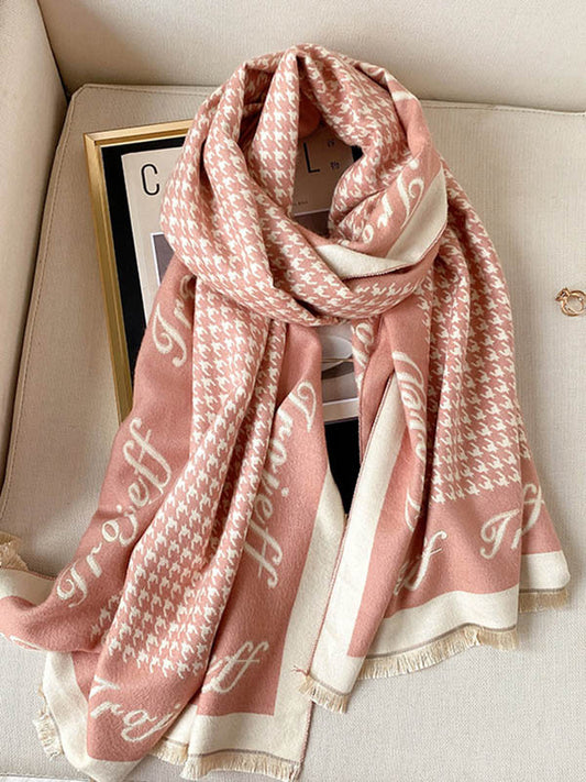 Vintage Printed Houndstooth Tasseled Shawl&Scarf
