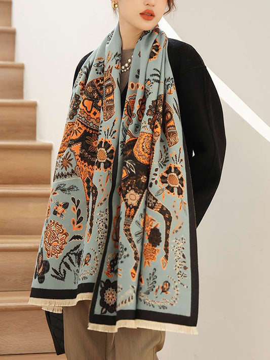 Vintage Knitting Tasseled Jacquard Imitated Cashmere Scarf Shawl