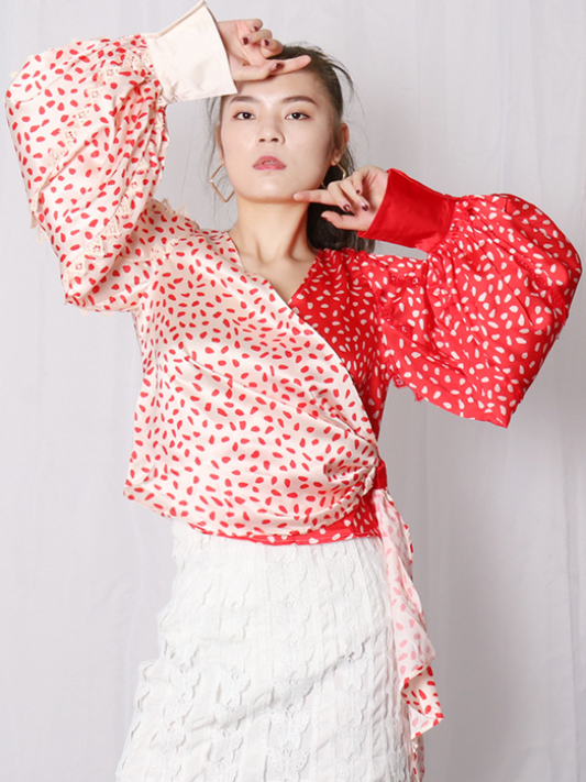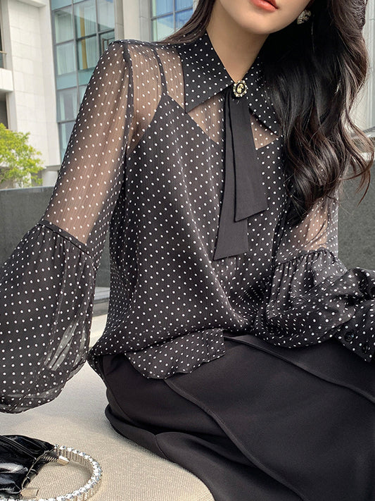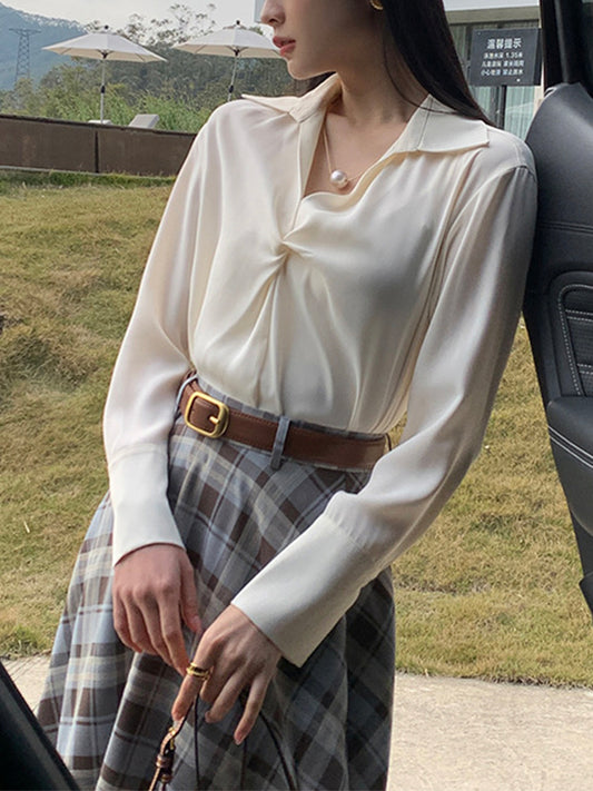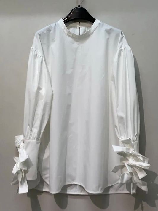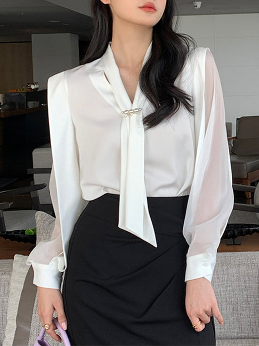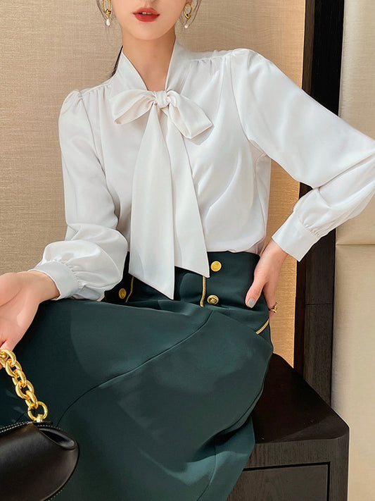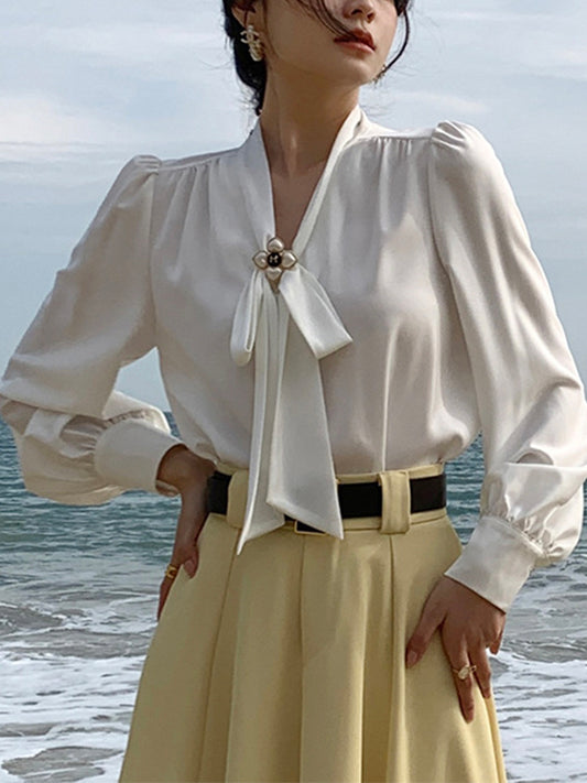 Bow Ribbon Long Sleeve Satin Shirt Top