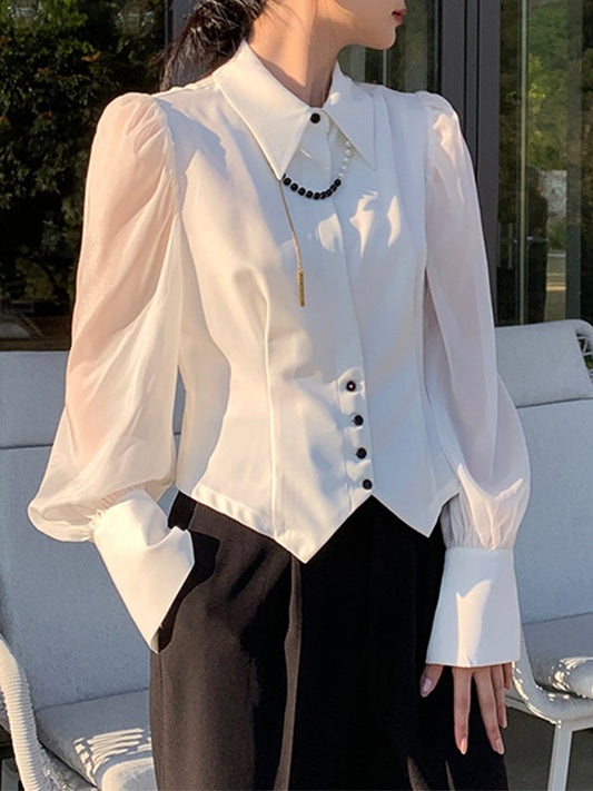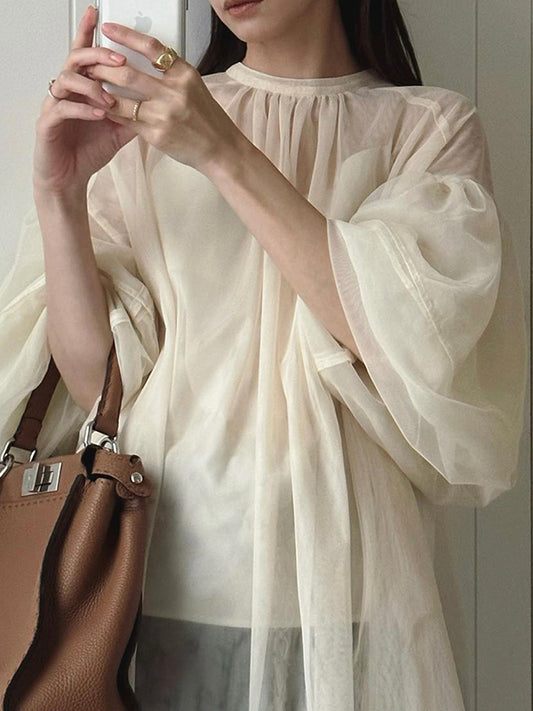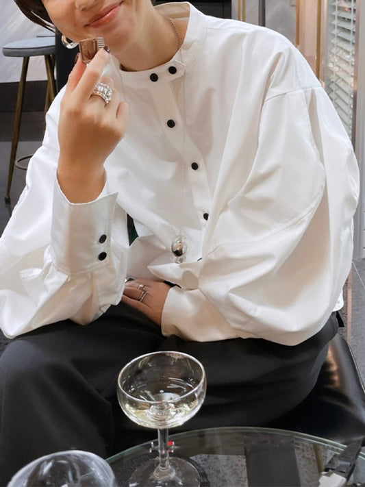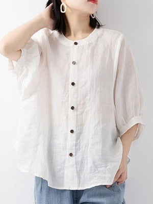 Retro Cotton Linen Lantern Sleeve Top Shirt