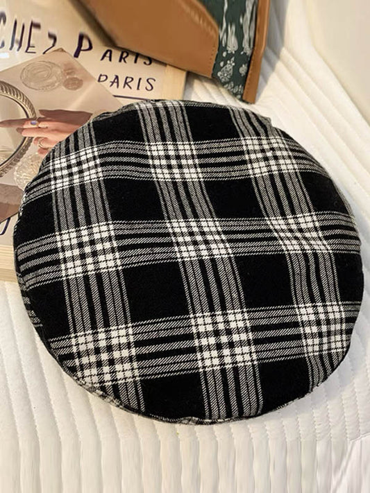 Artistic Retro Vintage 4 Colors Plaid Beret Hat