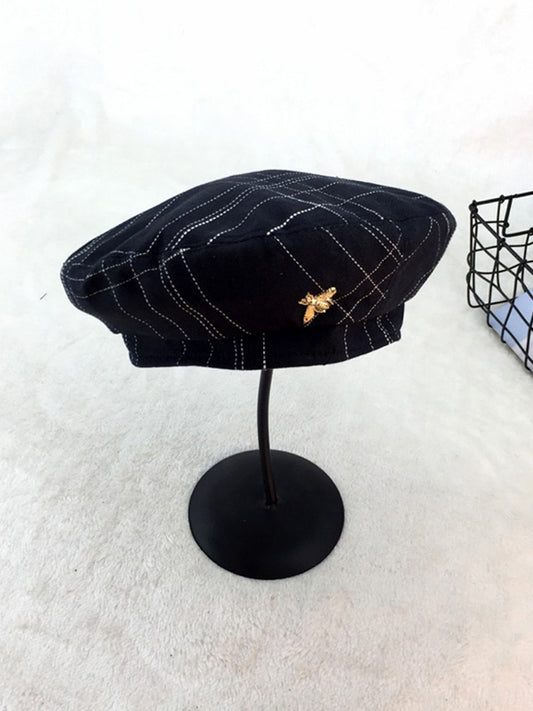 Original 3 Colors Plaid Alloy Bee Buttoned Beret Hat