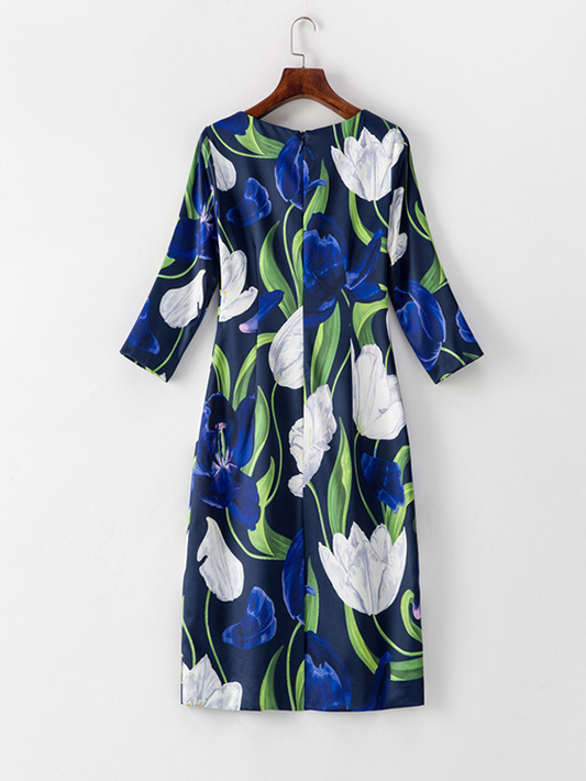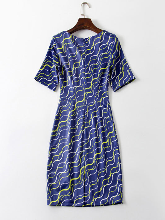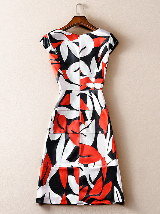 Fashion Round Neck Sleeveless Printed Belt Dress