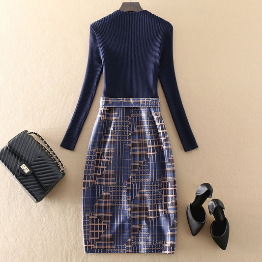 Fashion Long Sleeve Knit Panel Sweater Dress