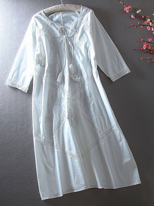 Plus Size Design Embroidered Half Sleeve Cover Hip Round Neck Dress
