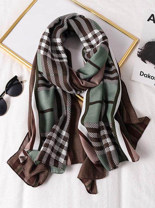 Plaid Printed Warm Sun-Proof Silk Scarf