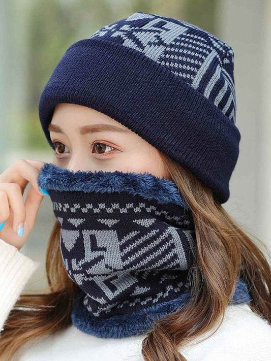 Fashion Knitting Jacquard Keep Warm Scarf&Hat Two Pieces Set