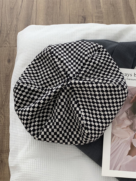 Vintage Contrast Color Black White Red White Plaid Beret