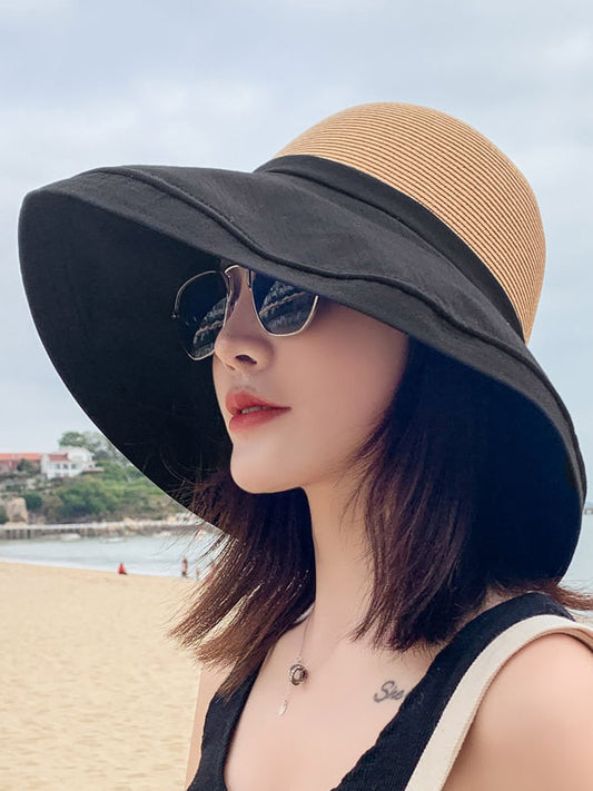 Contrast Colors Splicing Bow-Embellished Big Brim Fisherman Hat