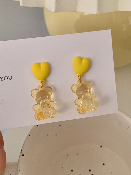 Girlish Candy Color See-Through Bear Earrings
