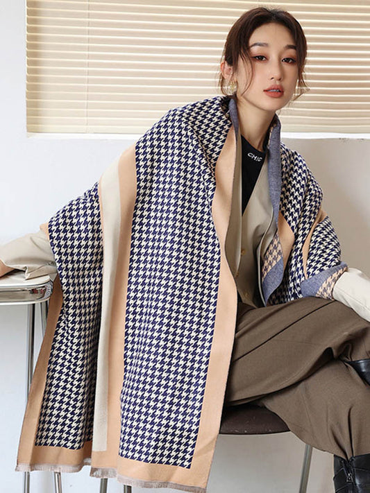 Urban Vintage Imitated Cashmere Houndstooth Shawl Scarf
