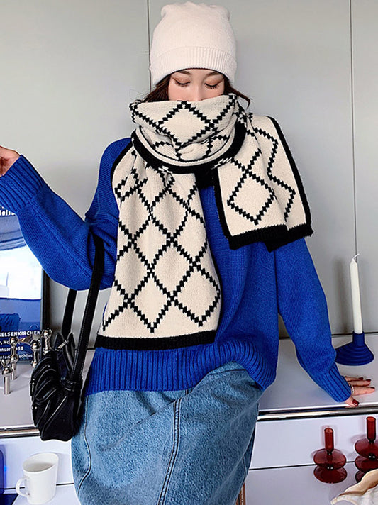 Stylish 8 Colors Rhombic Plaid Warm Knitted Scarf