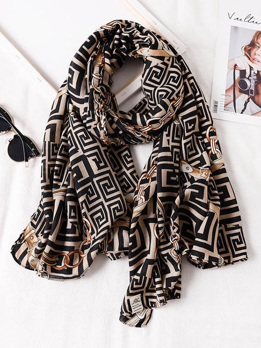 Vintage Geometry Printed Sun-Protection Silk Scarf