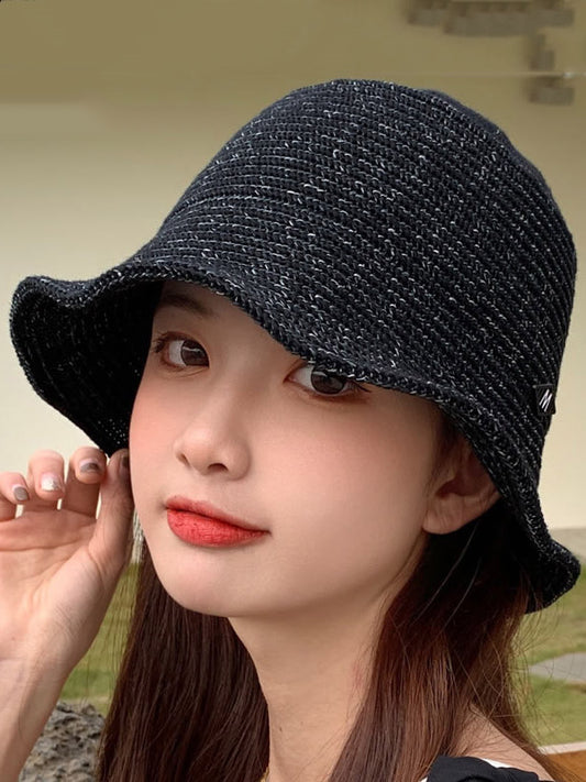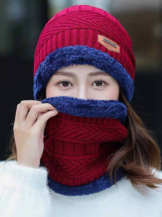 Simple Knitting Contrast Color Scarf&Hat Two Pieces Set