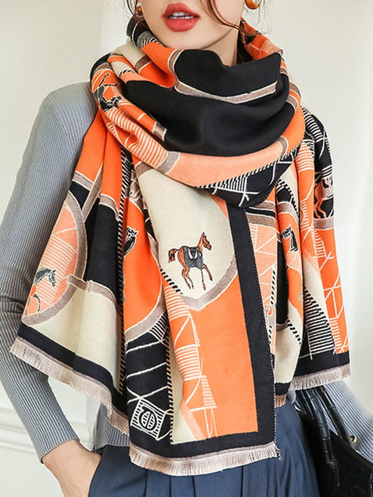 Original Vintage Warm Contrast Color Cartoon Printed Shawl&Scarf