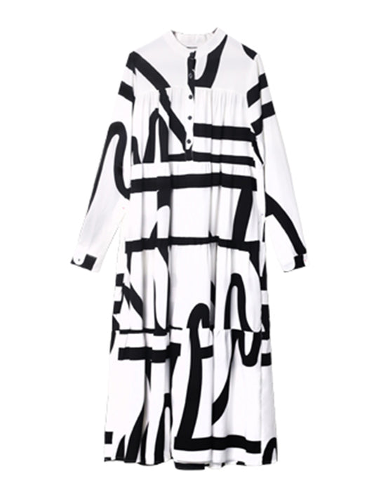 Original Black&Gray Loose High-Neck Long Sleeve Dress