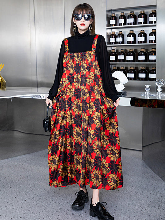 Vintage Loose Colorful Printed Vest Dress Midi Dress